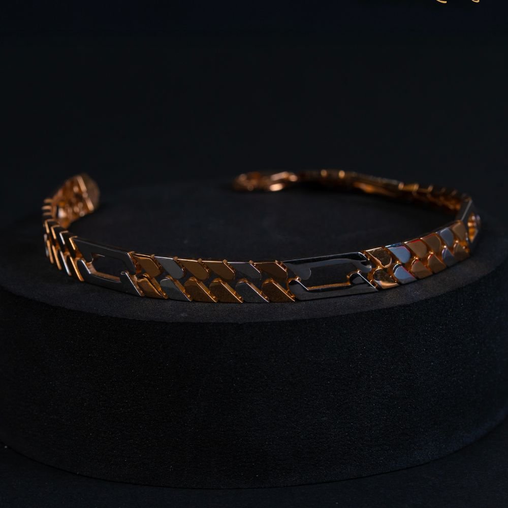 Elevate your style with this striking Dual-Tone Chevron Link Bracelet, featuring a bold fusion of polished black and gold tones. Each interlocking chevron link is meticulously crafted to reflect light and movement, symbolizing strength, confidence, and modern sophistication. Designed for the contemporary man who values refined detail, this bracelet pairs seamlessly with both formal and casual attire, making it a standout accessory for any occasion.
