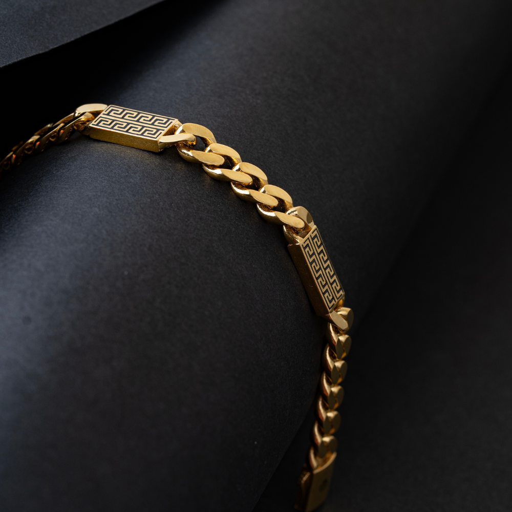 Command attention with this Regal Crest Bracelet, crafted with solid gold-toned links and refined geometric enamel panels. The structured design and polished finish reflect strength, confidence, and timeless luxury. Each link is precisely crafted to ensure durability while maintaining a smooth, comfortable fit. Perfect for everyday wear or special occasions, this bracelet adds a powerful statement to modern and traditional styles alike.